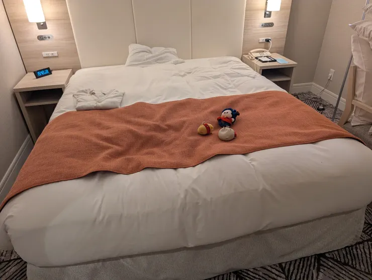 この前は旅行にも連れていき、大きなベッドを占拠させてあげた。大喜びに見える。かわいいね。